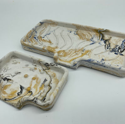 Ce très grand porte savon en béton est produit en couleur blanche ou marbrée avec différentes teintes. Il permet de mettre plusieurs items sur celui-ci.